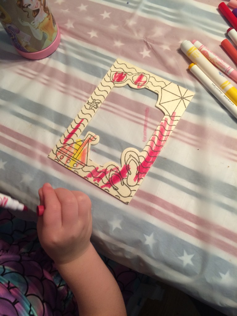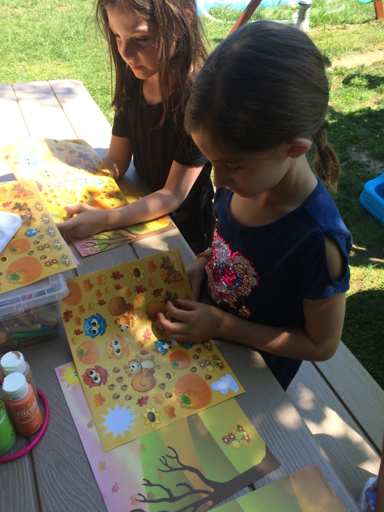 Disney Coloring Books & Stickers – We have so many Disney coloring books and stickers in our art storage bin, and I put them to good use during Disney Week. I taped white butcher paper down to our patio table, and the kids all enjoyed creating beautiful works of art with the stickers and markers. They also enjoyed coloring in the coloring books as part of the “Art Club” they have created together.