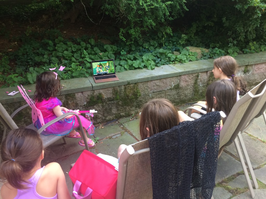 Bippity Boppity Boutique at Home – One of my daughters’ favorite experiences at Disney World was getting pampered at Bippity Boppity Boutique. We recreated that experience at camp by doing the girls’ hair, makeup and nails after they dressed up in their favorite Disney costumes. I got these little tiara combs and colored hair extensions, similar to the ones they use at Bippity Boppity Boutique, and the girls have been wearing them all week!