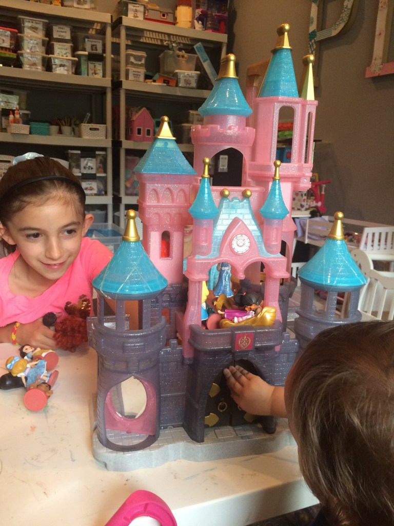 Disney Castle with Small Figures – We’ve had this Disney castle for years, and we have a million little Disney figures. I put the castle and the figures out on a table in the play room, and the kids had a great time playing with them. The older kids also built their own castles for the figures using Magnatiles, so it was fun for all ages.